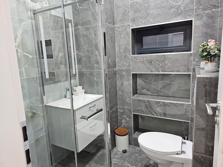 Ajustați unghiul pentru a evita reflexiile neplăcute și păstrați accentul pe designul curat al băii.